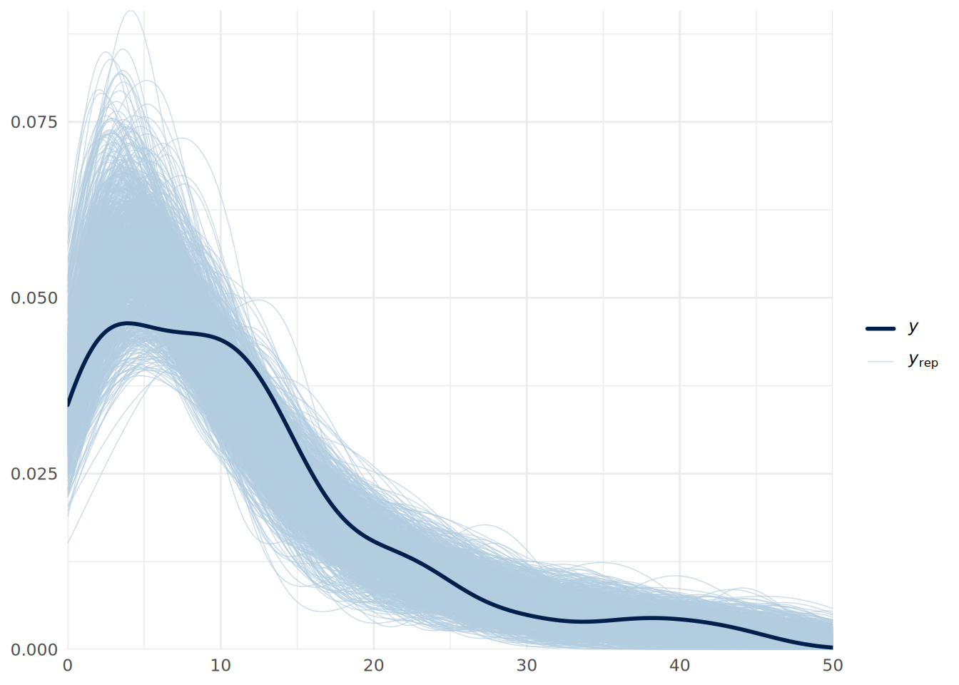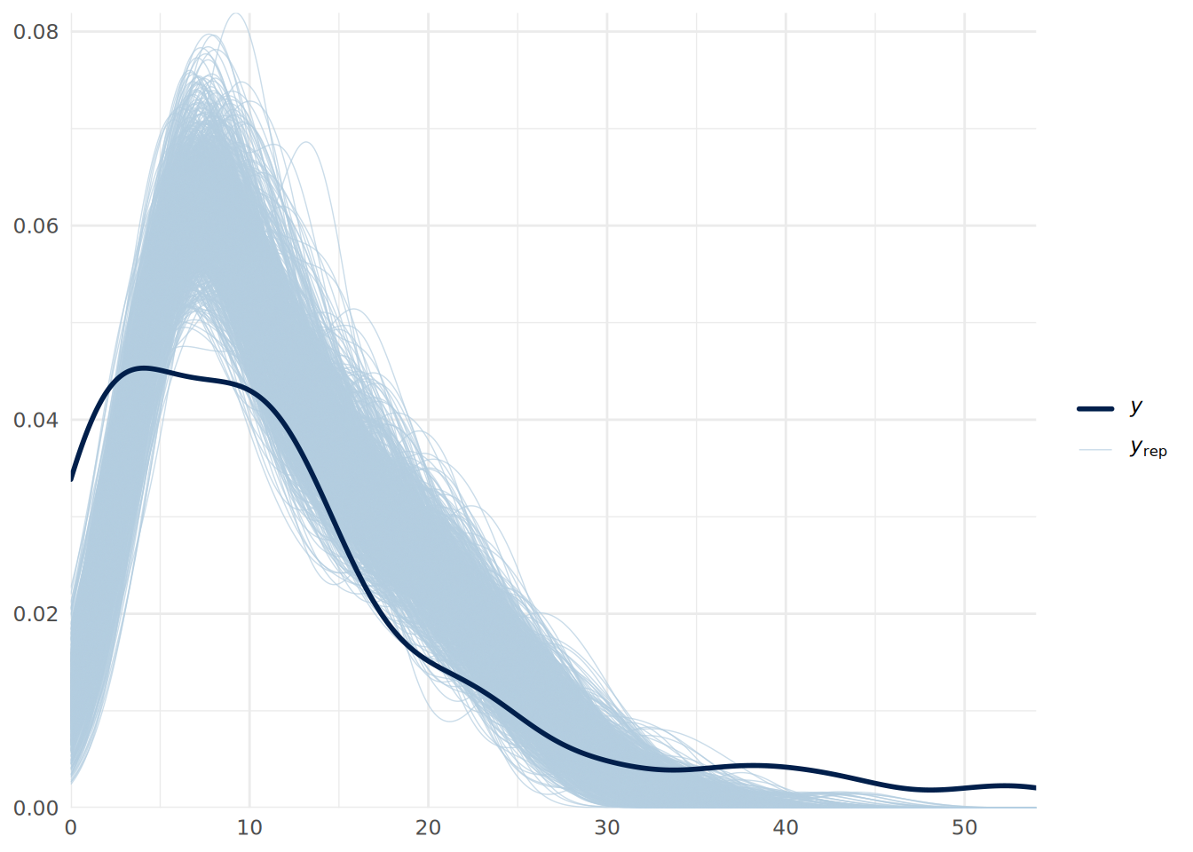 - For each model, conduct appropriate posterior predictive checks to assess the fit of the model to the data. Comment on the results. Are you comfortable that the model is a good fit?